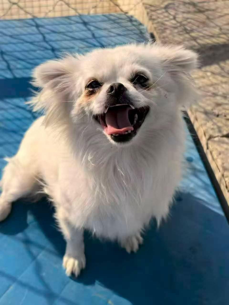 Bubbles was rescued from an overcrowded shelter in China and we think she may be blind in one eye.